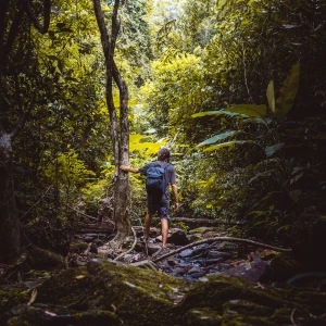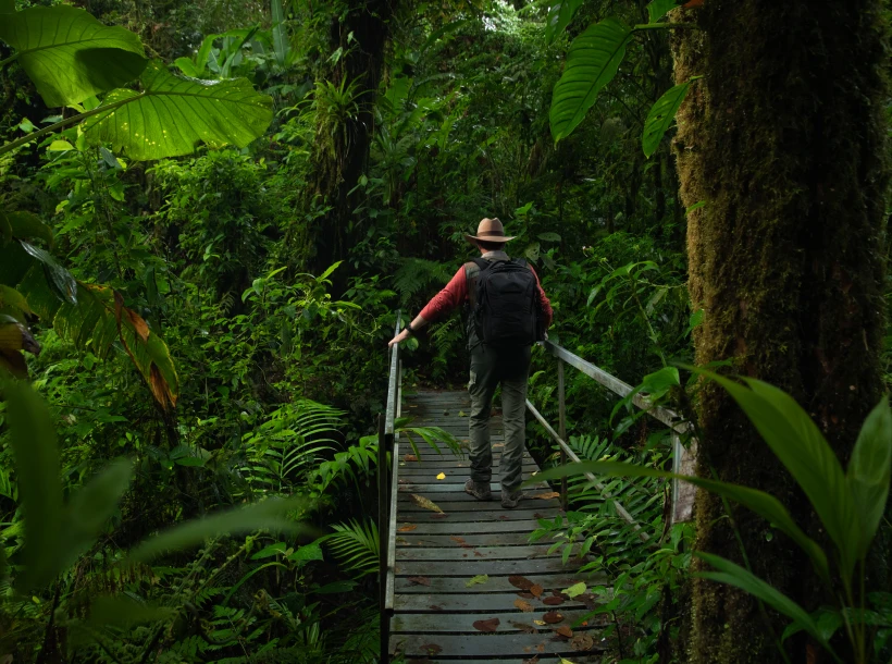Travelers should wear lightweight long trousers, long-sleeved shirts, waterproof hiking boots, gloves, and a rain jacket to protect against mud, vegetation, and changing weather. Insect repellent, sunscreen, binoculars, and a small daypack are also essential for comfort during trekking and safari activities.